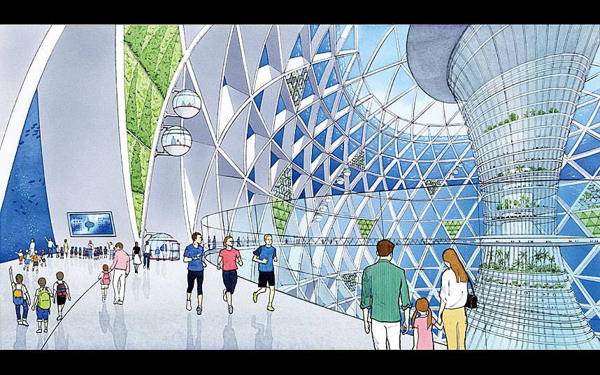 Proyek ambisius ini diberi nama 'Ocean Spiral' atau 'Spiral Samudera' yang akan membangun sebuah perikanan sebagai sumber makanan orang yang tinggal di dalamnya.